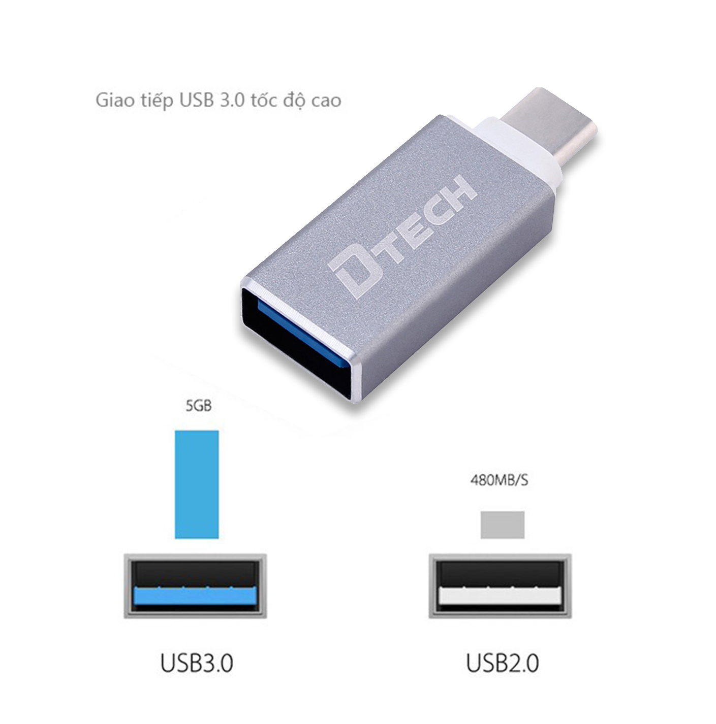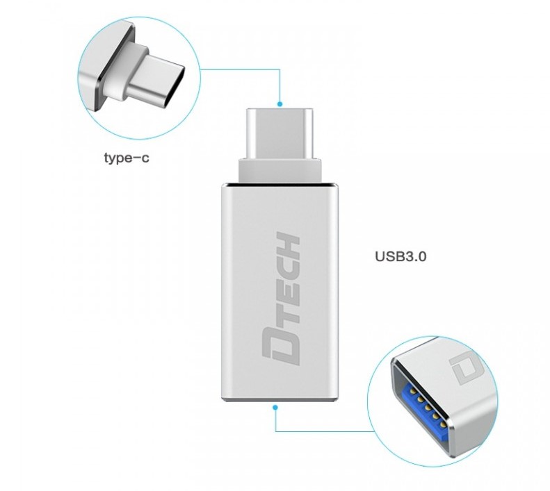 Plug and play Adapter OTG DTech USB 3.0 sang USB 3.1 Type-C T0001 giúp bạn dễ dàng kết nối Windows, Mac, SmartPhone của bạn với một số thiết bị USB 3.0 với bộ chuyển đổi chuẩn USB Type-C với khả năng tương thích ngược với các thiết bị USB hiện có USB 3.0 và USB 2.0. |