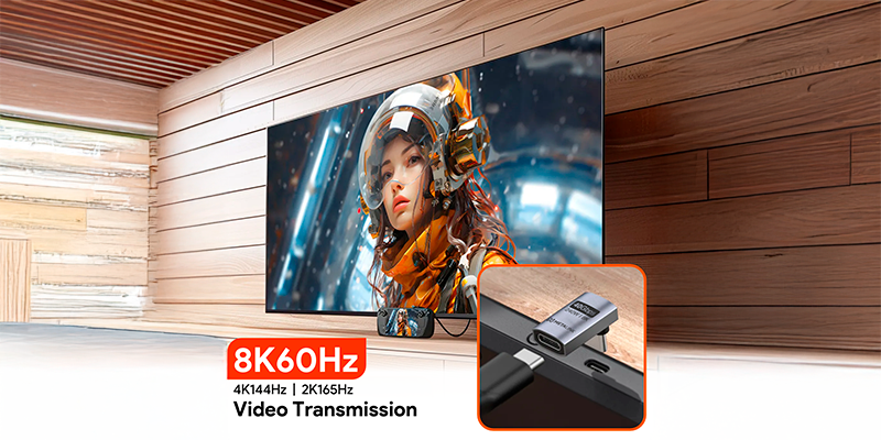 Adapter hỗ trợ truyền hình ảnh độ phân giải 8K@60Hz, 4K@144Hz hoặc 2K@165Hz – lý tưởng cho các nhu cầu mở rộng màn hình, trình chiếu hoặc sáng tạo nội dung chuyên nghiệp. Sử dụng kết nối USB-C hỗ trợ DisplayPort Alt Mode, bạn có thể kết nối trực tiếp với màn hình, TV hoặc máy chiếu hiện đại mà không cần thêm thiết bị trung gian.