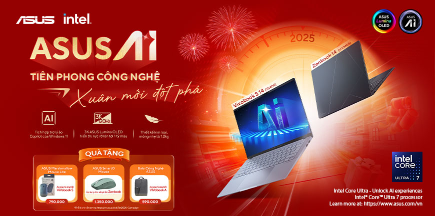 Để mở đầu năm 2025, ASUS xin dành tặng bạn chương trình khuyến mãi “ASUS AI – Tiên phong công nghệ, xuân mới đột phá” với những quà tặng đặc biệt khi mua dòng sản phẩm ASUS Zenbook & ASUS Vivobook. Đừng bỏ lỡ cơ hội tuyệt vời này để nâng cấp thiết bị công nghệ - người bạn đồng hành đắc lực cho một năm mới thăng hạng và đầy bứt phá.