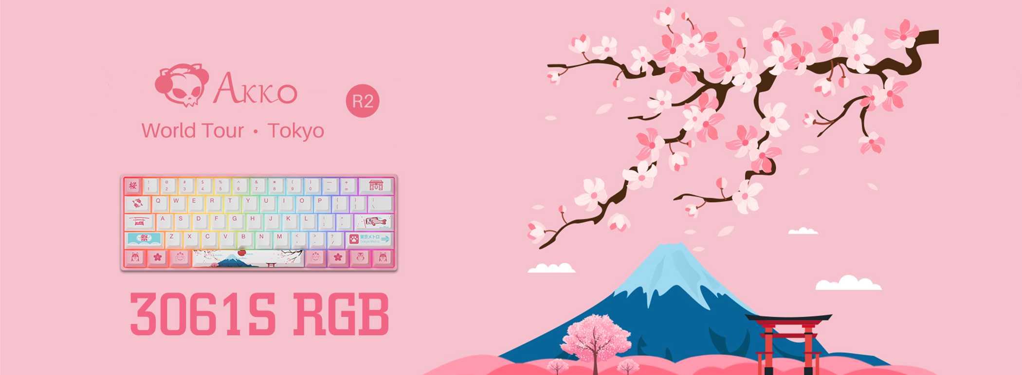 Bàn phím cơ AKKO Biểu tượng của nhật bản Bàn phím cơ AKKO 3061 World Tour Tokyo R2 RGB được thiết kế hình ảnh biểu tượng của Tokyo là núi Phú Sĩ và hoa anh đào. Series World Tour không chỉ là công cụ đánh máy mà còn có thể đóng vai trò là phương tiện giao tiếp và tương tác văn hóa, điều này tạo nét độc đáo trên sản phẩm này. |