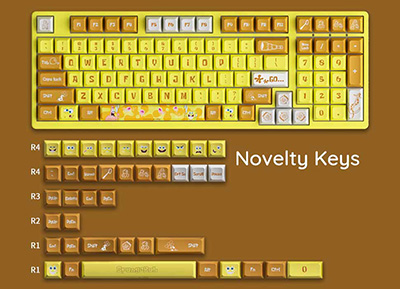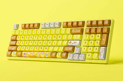 Bàn phím cơ AKKO 3098S SpongeBob ttrang bị keycap PBT double-shot cứng hơn và bền hơn nhựa ABS, các phím bấm có kết cấu, chắc chắn trên bàn phím này sẽ không bị mài mòn với lớp hoàn thiện sáng bóng và chữ sẽ không bao giờ mờ nhờ quá trình đúc đôi.