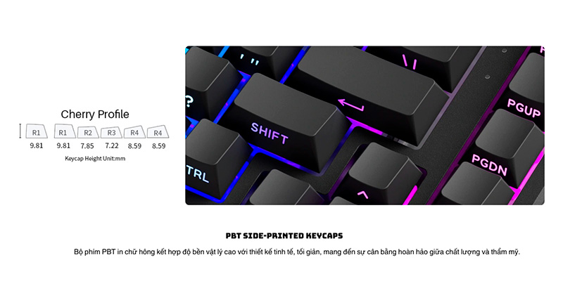 Keycap PBT doubleshot, profile Cherry cổ điển và in side-print độc đáo