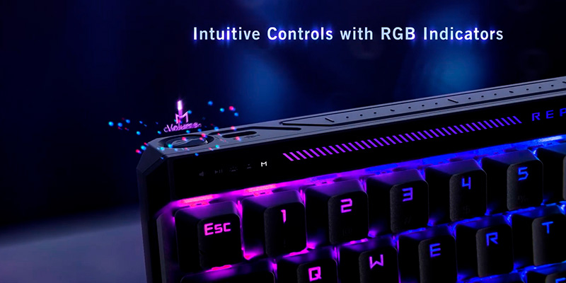 Một tính năng đặc biệt của bàn phím này là touch panel cảm ứng ở cạnh bên, cho phép điều chỉnh âm lượng hoặc gán phím tắt theo ý muốn. Tính năng này giúp tối ưu hóa trải nghiệm sử dụng, mang lại sự tiện lợi và nâng cao hiệu suất làm việc cũng như chơi game.