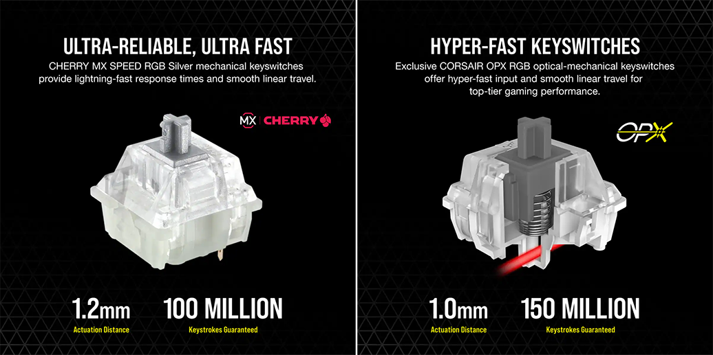 Nâng cao hiệu suất với AXON Trải nghiệm bàn phím chơi game tiên tiến nhất của Corsair cho đầu vào nhanh hơn gấp 4 lần với tần số báo cáo 4.000Hz và quét phím 4.000Hz, đồng thời tạo ra hiệu ứng ánh sáng 20 lớp. |