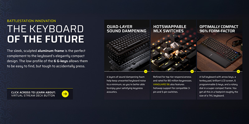 Corsair đã khéo léo biến Vanguard 96 thành một công cụ năng suất mạnh mẽ thông qua việc tích hợp sâu với hệ sinh thái Elgato Virtual Stream Deck. Tính năng này cho phép người dùng tạo ra các phím tắt ảo có thể nhấp chuột trực tiếp trên màn hình hoặc truy cập nhanh thông qua các phím nóng (hotkey) vật lý. Với nút khởi chạy Virtual Stream Deck chuyên dụng, bạn có thể triệu hồi ngay lập tức bảng điều khiển ảo để quản lý luồng livestream, điều chỉnh âm thanh, bật tắt camera hay khởi chạy ứng dụng chỉ trong tích tắc. Sự linh hoạt này giúp game thủ và streamer kiểm soát mọi khía cạnh của buổi phát sóng mà không cần đầu tư thêm phần cứng rời, tối ưu hóa quy trình làm việc và giữ cho sự tập trung luôn hướng về màn hình chính.