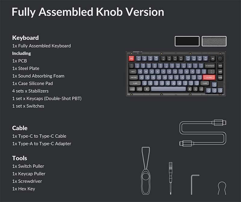 | Nút vặn tùy chỉnh Bàn phím cơ Keychron V1 Black Translucent Led RGB HotSwap thiết kế nhằm nâng cao luồng việc sáng tạo của bạn cho phép bạn tùy chỉnh các phím tắt và macro yêu thích của mình, thông qua phần mềm VIA cải tiến một cách dễ dàng. Bạn đã có thể dễ dàng tùy chỉnh nút vặn cho phím hoặc lệnh macro mong muốn của mình như phóng to/ thu nhỏ, điều chỉnh độ sáng màn hình, kích thước bút vẽ, âm lượng,... |  |
