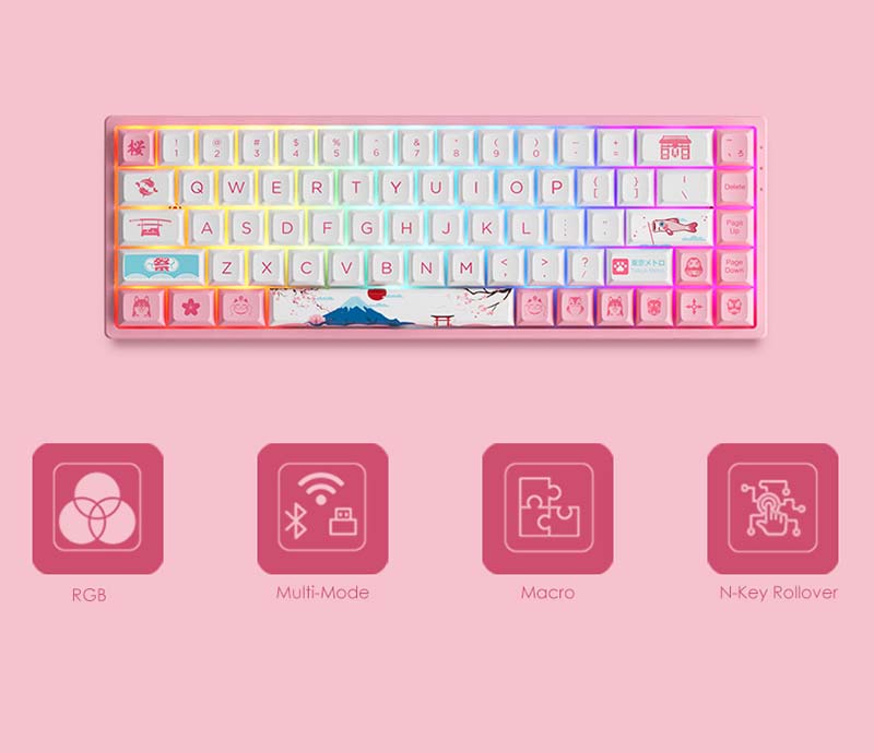 Đèn nền RGB Bàn phím cơ không dây AKKO 3068B Plus World Tour Tokyo R2 với nhiều chế độ led RGB có thể tùy chỉnh dễ dàng, thỏa sức sáng tạo cho bàn gaming của bạn. |