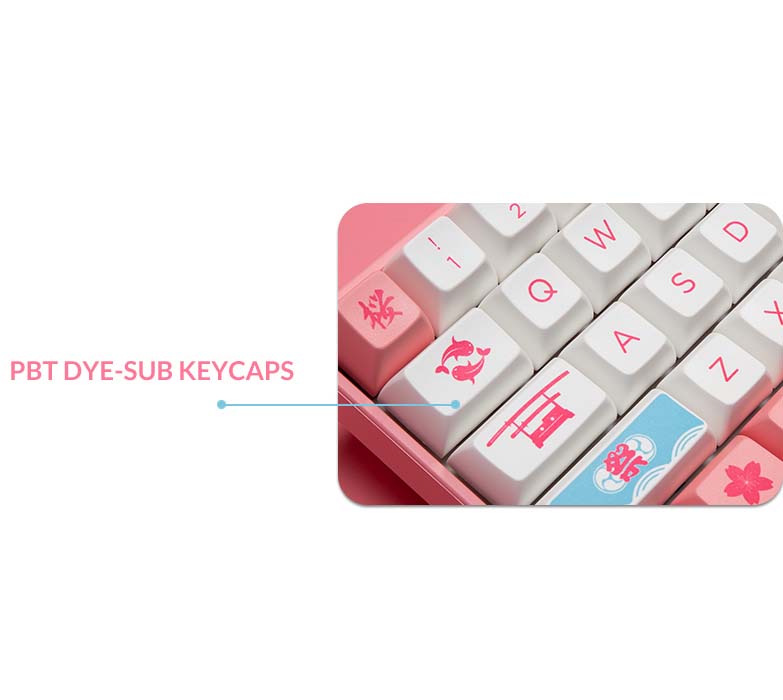 Keycap PBT Dye-Subbed Bàn phím cơ không dây AKKO 3068B Plus World Tour Tokyo R2 trang bị keycap PBT Dye-subbed là công nghệ dùng nhiệt để làm cho mực thấm sâu vào keycap và màu của keycap này cũng sẽ tươi và bắt mắt hơn. |
