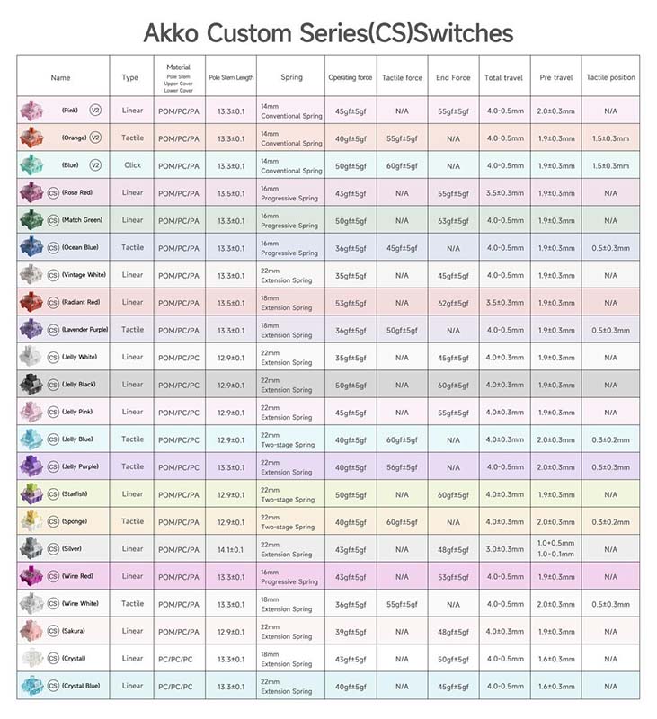 Bàn phím cơ không dây AKKO 3098 RF Dracula Castle Akko V3 Switch AKKO V3 switch là một dòng switch đời mới được AKKO kết hợp cùng KTT sản xuất nhằm thỏa mãn đam mê trải nghiệm cảm giác gõ phím của người dùng. Một điểm khác biệt lớn nhất giữa AKKO switch v3 và AKKO switch v2 là lò xo có biên độ dày hơn hứa hẹn sẽ đem lại trải nghiệm độc đáo và khác biệt cho người dùng. |