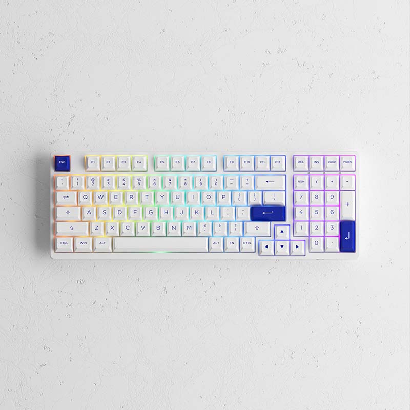 Keycap PBT double-shot Bàn phím cơ không dây AKKO 3098B Multi-modes Blue on White trang bị keycap PBT double-shot cứng hơn và bền hơn nhựa ABS, các phím bấm có kết cấu, chắc chắn trên bàn phím này sẽ không bị mài mòn với lớp hoàn thiện sáng bóng và chữ sẽ không bao giờ mờ nhờ quá trình đúc đôi.ắt hơn. |