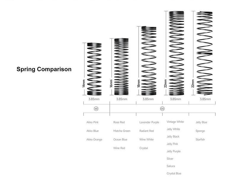 Akko CS Switch AKKO CS switch là một dòng switch đời mới được AKKO kết hợp cùng KTT sản xuất nhằm thỏa mãn đam mê trải nghiệm cảm giác gõ phím của người dùng. Một điểm khác biệt lớn nhất giữa CS switch và AKKO switch v2 là lò xo. Lò xo có biên độ dày hơn hứa hẹn sẽ đem lại trải nghiệm độc đáo và khác biệt cho người dùng. |