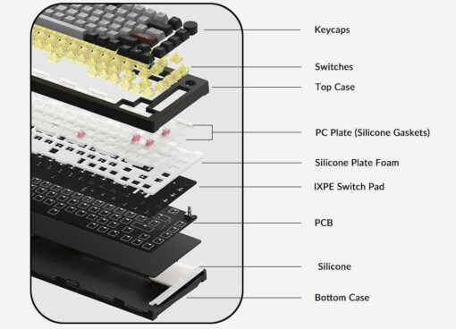 HotSwap Bàn phím cơ không dây AKKO 5075B Plus Black & Cyan hỗ trợ HotSwap giúp bạn dễ dàng thay thế switch trên bàn phím cơ mà không cần phải qua công đoạn hàn mạch PCB. |