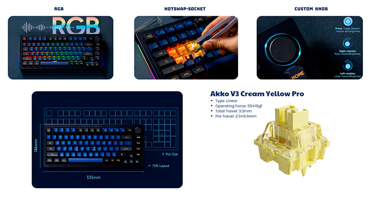 AKKO 5075B Plus hỗ trợ hotswap 5-pin, cho phép người dùng thay thế switch mà không cần hàn, giúp dễ dàng tùy chỉnh trải nghiệm gõ phím theo sở thích cá nhân. Việc thử nghiệm nhiều loại switch khác nhau trở nên đơn giản hơn bao giờ hết, giúp tối ưu cảm giác gõ phù hợp với từng nhu cầu sử dụng khác nhau.