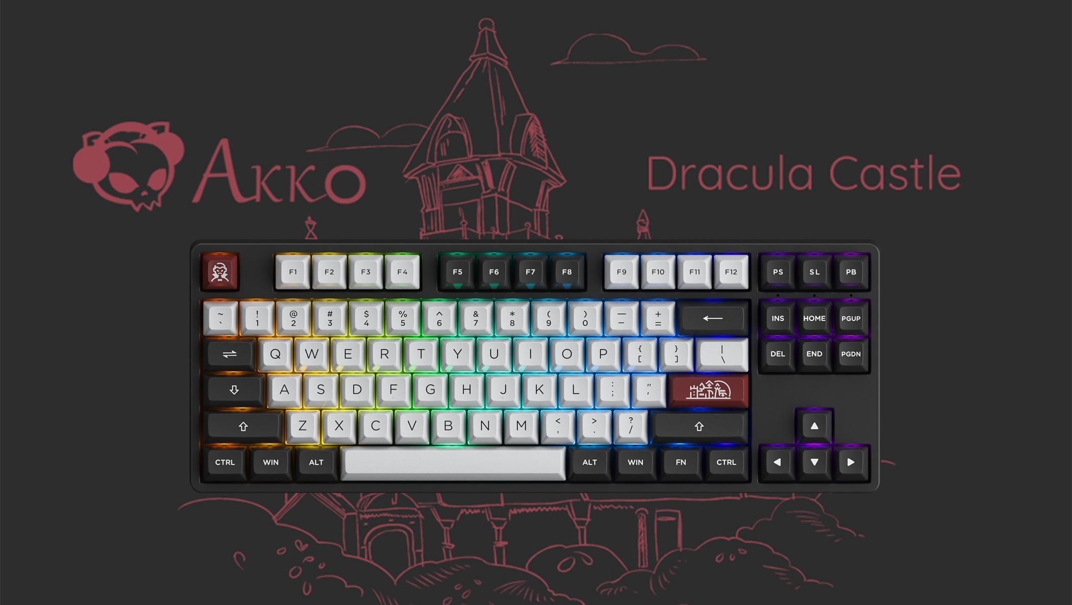 Keycap tặng kèm AKKO 5087B Multi-modes Dracula Castle tặng kèm keycap để bạn thỏa sức sáng tạo bàn phím theo ý thích của bạn. |