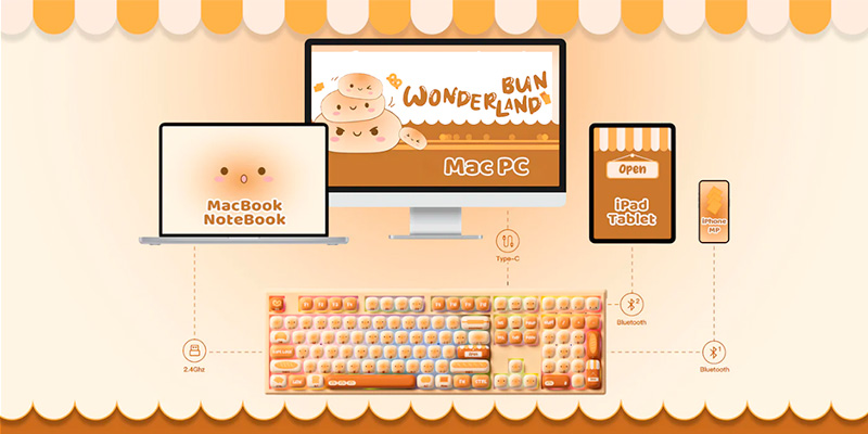 Lấy cảm hứng từ những chiếc bánh ngọt tròn thơm ngon, bàn phím cơ không dây AKKO MonsGeek MG108B Bun Wonderland RGB Hotswap (AKKO Sw) mang đến diện mạo độc đáo và dễ thương. Với phối màu Bun Wonderland kết hợp cùng layout fullsize 108 phím và keycap PBT profile MOG cao cấp, đây không chỉ là công cụ làm việc mà còn là điểm nhấn thẩm mỹ cho góc setup cá nhân.