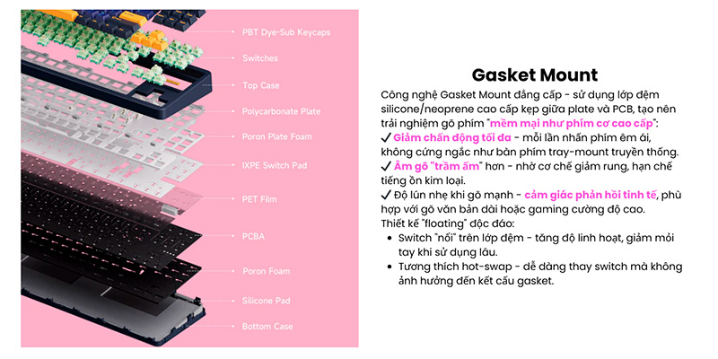 Công nghệ Gasket Mount cho cảm giác gõ cao cấp