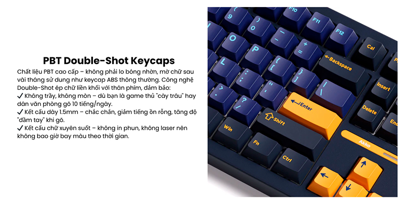 Keycap PBT Doubleshot bền bỉ, chống mài mòn theo thời gian