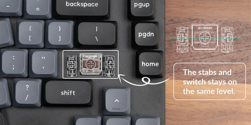 Bàn phím cơ không dây Alice Keychron K15 Pro Low Profile RGB thiết kế mới giúp tăng cường độ ổn định, ít rung lắc hơn cải thiện cảm giác gõ phím tốt hơn đối với những phím lớn.
