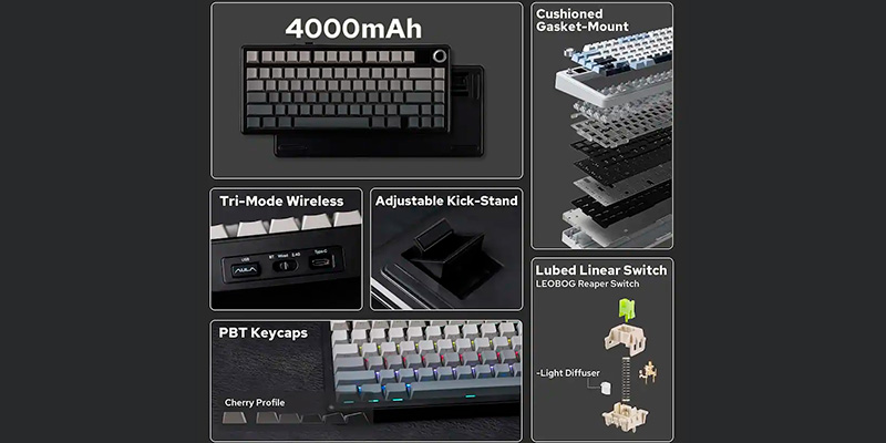 Không chỉ chú trọng vào phần cứng bên trong, AULA F75 Max còn mang đến trải nghiệm thị giác ấn tượng với hệ thống đèn nền LED RGB hỗ trợ tới 16 hiệu ứng ánh sáng khác nhau. Người dùng có thể dễ dàng thay đổi các chế độ màu sắc để phù hợp với tâm trạng hoặc không gian setup của mình, từ những hiệu ứng sóng màu rực rỡ đến ánh sáng tĩnh trang nhã. Khả năng tương thích tuyệt vời với các hệ điều hành tương thích như WINXP/7/8/10, Android, IOS và MAC đảm bảo rằng mọi tính năng từ phím tắt đến đèn nền đều hoạt động trơn tru mà không gặp trở ngại về phần mềm. Sự hoàn thiện tỉ mỉ trong từng chi tiết thiết kế và tính năng cho thấy sự đầu tư nghiêm túc của AULA nhằm mang lại trải nghiệm người dùng tốt nhất trong phân khúc giá.