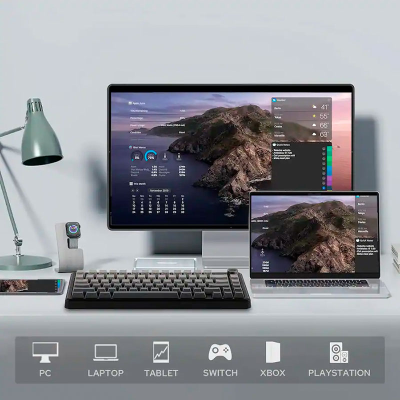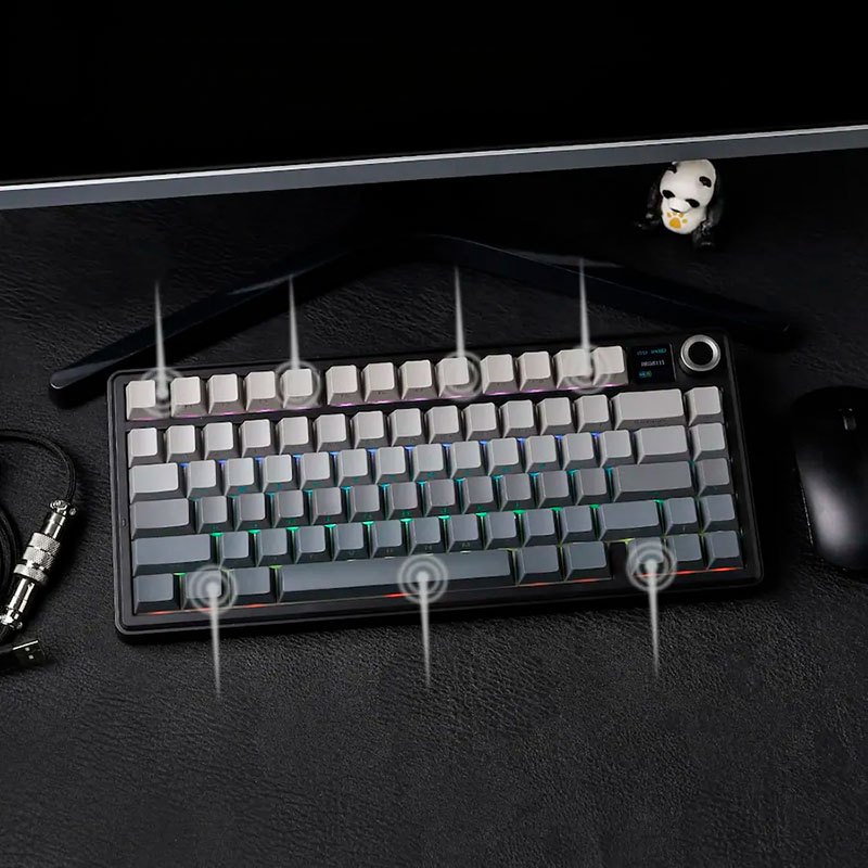 Điểm nhấn công nghệ đáng chú ý nhất trên phiên bản F75 Max này chính là sự tích hợp của màn hình LCD hiển thị thông tin trực quan, một tính năng hiếm thấy trong phân khúc. Màn hình này cho phép người dùng theo dõi nhanh trạng thái pin, chế độ kết nối và các cài đặt hệ thống quan trọng mà không cần mở phần mềm trên máy tính. Bàn phím hỗ trợ kết nối 3 mode linh hoạt bao gồm Bluetooth, Wireless 2.4GHz và cáp USB Type-C, đảm bảo khả năng tương thích rộng rãi với nhiều thiết bị. Dù bạn đang sử dụng hệ sinh thái Windows, MacOS hay các thiết bị di động chạy Android, iOS, việc chuyển đổi giữa các thiết bị diễn ra mượt mà và nhanh chóng. Sự đa năng này giúp tối ưu hóa quy trình làm việc đa nhiệm, cho phép bạn làm chủ mọi tác vụ từ soạn thảo văn bản đến giải trí đỉnh cao trên mọi nền tảng.