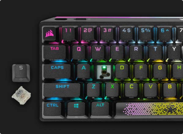 Hỗ trợ HotSwap Bàn phím cơ không dây Corsair K70 PRO Mini RGB hỗ trợ HotSwap giúp bạn dễ dàng thay thế switch trên bàn phím cơ mà không cần phải qua công đoạn hàn mạch PCB. |