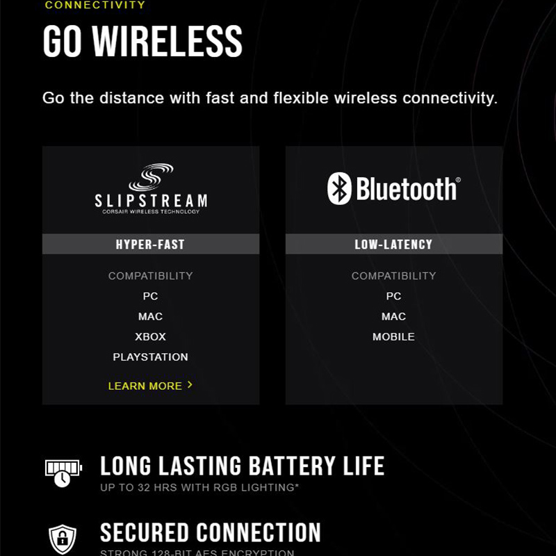 Kết nối dễ dàng Bàn phím cơ không dây Corsair K70 PRO Mini RGB linh hoạt hơn với 3 hình thức kết nối gồm kết nối không dây Slipstream-mạnh mẽ, hoàn hảo khi chơi game, kết Bluetooth- độ trễ thấp cùng tiết kiệm năng lượng- và sử dụng dây cáp có thể tháo rời để kết nối. |