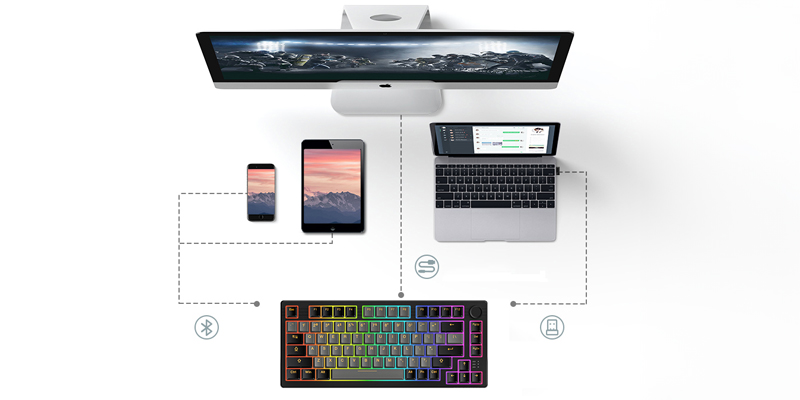 Bàn phím cơ không dây Dareu EK75 Pro Triple Mode WBC hoạt động với macOS, iOS, Windows và Android.