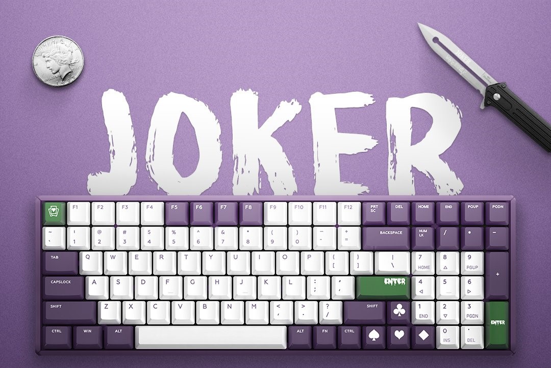 Keycap PBT Bàn phím cơ không dây IQUNIX F96 Joker RGB trang bị keycap PBT là chất liệu rất bền, khó bị bóng theo thời gian và mang đến cảm giác gõ riêng biệt. |
