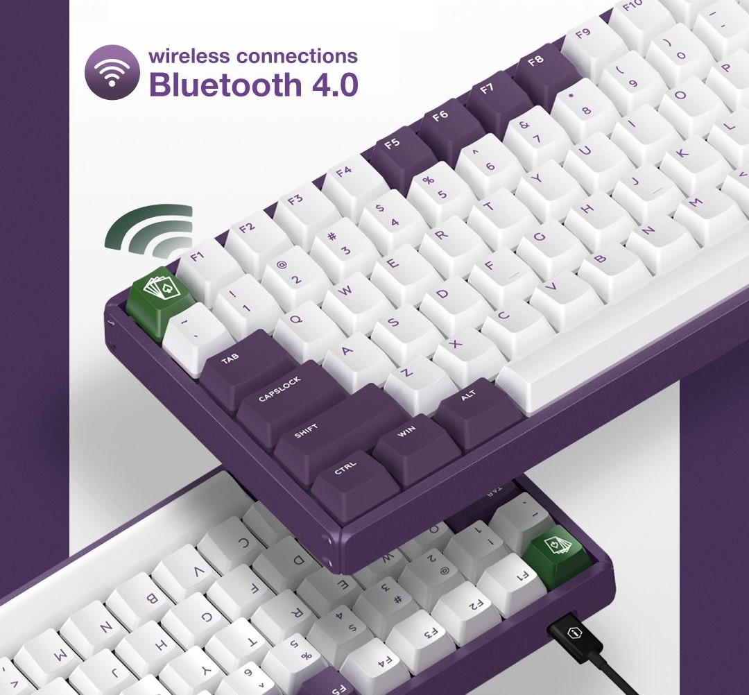 Nhiều phương thức kết nối Bàn phím cơ không dây IQUNIX F96 Joker RGB dễ dàng lựa chọn kết nối không dây thông qua USB/ Bluetooth 4.0 hoặc kết nối qua dây qua cáp Type-C có thể tháo rời. |