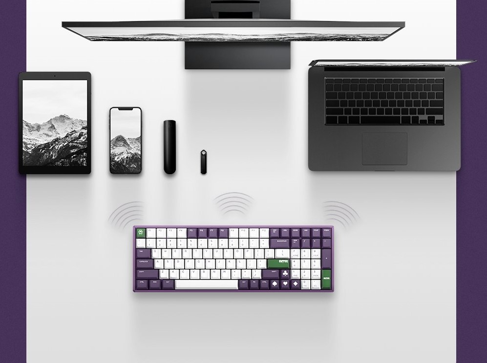 Đa kết nối Bàn phím cơ không dây IQUNIX F96 Joker RGB hỗ trợ kết nối lên đến 3 thiết bị cùng lúc và dễ dàng chuyển đổi để phù hợp. |