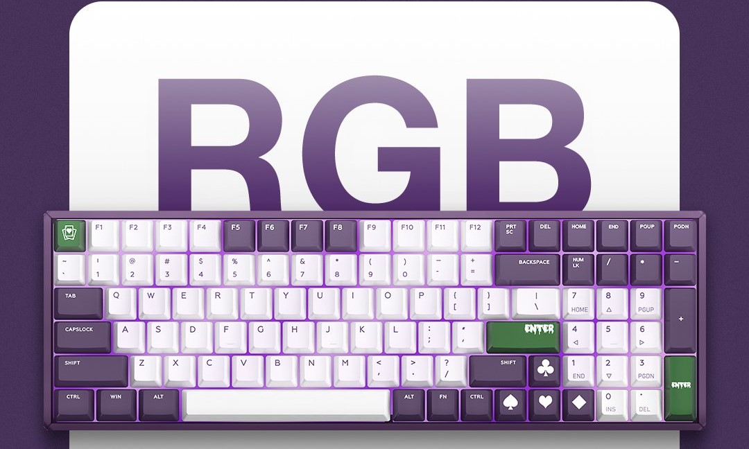 RGB tùy chỉnh Bàn phím cơ không dây IQUNIX F96 Joker RGB hỗ trợ các hiệu ứng đèn nền tích hợp sẵn với 16 triệu màu để bạn thỏa sức sáng tạo cho góc làm việc của bạn. |
