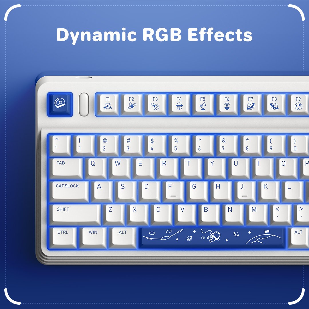 RGB tùy chỉnh Bàn phím cơ không dây IQUNIX L80 Cosmic Traveller RGB hỗ trợ 7 hiệu ứng đèn nền tích hợp sẵn với 16 triệu màu để bạn thỏa sức sáng tạo cho góc làm việc của bạn. |