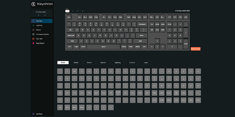 Bạn có thể dễ dàng tùy chỉnh phím, tạo Macro và các lớp chức năng thông qua ứng dụng web Keychron Launcher, nhờ vào việc bàn phím hỗ trợ firmware QMK. Mọi cài đặt của bạn sẽ được lưu trực tiếp vào Onboard Memory (bộ nhớ tích hợp) của bàn phím, giúp bạn giữ nguyên cấu hình khi chuyển sang máy tính khác.
