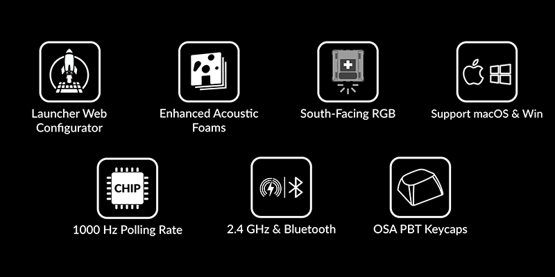 Cung cấp năng lượng cho chiếc bàn phím full-size này là viên Pin sạc 4000 mAh dung lượng lớn, cho phép hoạt động bền bỉ trong thời gian dài. Khi sử dụng kết nối Wireless 2.4GHz và tắt đèn nền, thời lượng pin có thể lên đến 190 giờ, giúp bạn yên tâm làm việc cả tuần mà không lo gián đoạn. Hệ thống chiếu sáng LED RGB rực rỡ được thiết kế dạng South-Facing RGB (mạch ngược), giúp ánh sáng hiển thị rõ ràng hơn từ góc nhìn của người dùng và không bị cấn khi lắp các bộ keycap profile thấp. Bạn có thể tùy chỉnh các hiệu ứng ánh sáng để phù hợp với tâm trạng hoặc không gian setup, biến chiếc bàn phím thành điểm nhấn nổi bật trên bàn làm việc của mình.