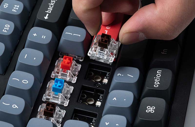 Hot Swappable Bàn phím cơ không dây Keychron K10 Pro RGB HotSwap hỗ trợ người dùng thay đổi nhanh các switch mà không cần hàn, chỉ cần đưa chúng vào là xong. |