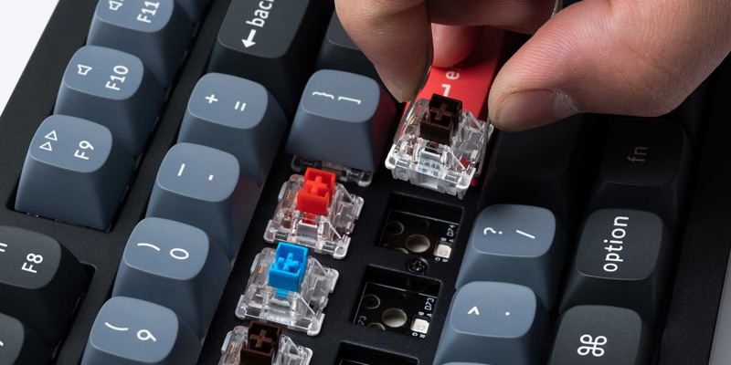 Bàn phím cơ không dây Keychron K10 Pro RGB Hotswap hỗ trợ người dùng thay đổi nhanh các switch mà không cần hàn, chỉ cần đưa chúng vào là xong.