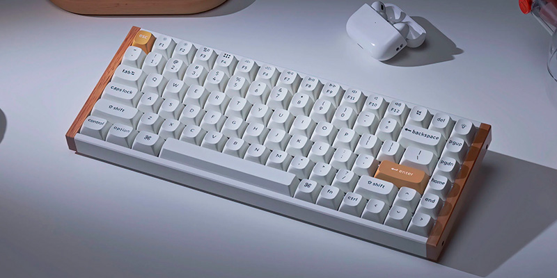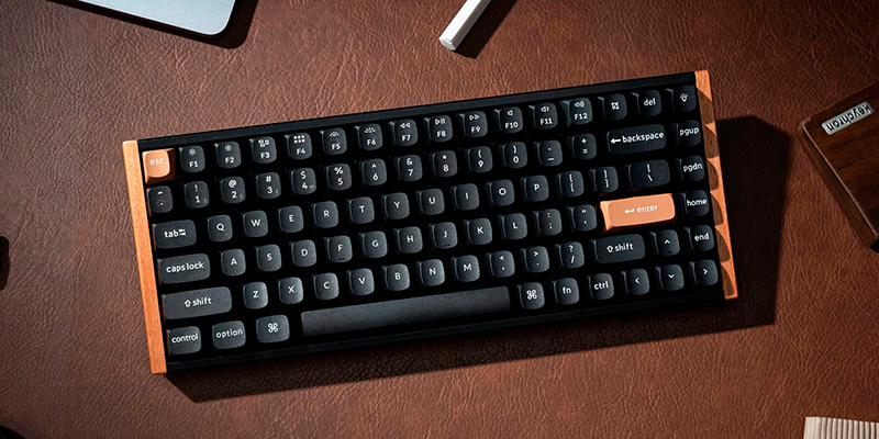 Thiết kế sang trọng – Khung nhôm viền gỗ, switch hot-swap, keycap PBT cao cấp