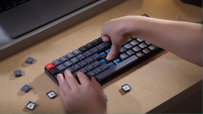 Hot Swappable Bàn phím cơ không dây Keychron K3 Pro RGB HotSwap hỗ trợ người dùng thay đổi nhanh các switch mà không cần hàn, chỉ cần đưa chúng vào là xong. |
