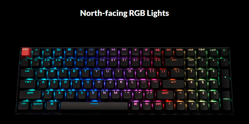 Keychron K4 V3 QMK RGB (Keychron Sw) trang bị hệ thống RGB backlight rực rỡ với hơn 22 chế độ ánh sáng động khác nhau, cho phép tùy chỉnh độ sáng, tốc độ và màu sắc theo phong cách cá nhân. Nhờ keycap PBT trong suốt chữ (shine-through), ánh sáng tỏa đều và nổi bật, tạo nên không gian làm việc và chơi game đậm chất cá tính.