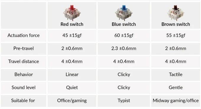 Switch Gateron Được thiết kế sử dụng Switch Gateron để tăng khả năng phản hồi nhanh cùng độ bền cao. Tùy theo nhu cầu sử dụng mà K4V2 có 3 phiên bản switch tùy chọn. Với Switch Red ta cảm nhận được sự mượt mà và yên tĩnh, thích hợp với môi trường làm việc văn phòng. Với Switch Blue ta có thể nghe thấy tiếng gõ clicky mỗi khi nhấn phím, tạo cảm giác chuyên nghiệp khi chơi game. Còn ở Switch Brown ta thấy được cảm giác nhấn cùng sự nhẹ nhàng yên tĩnh trong đó, là sự kết hợp giữa văn phòng và gaming. |