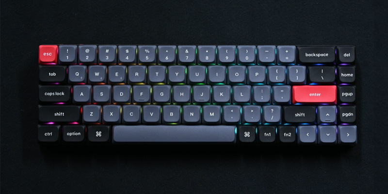 Bàn phím cơ không dây Keychron K7 Pro Low Profile RGB trang bị keycap PBT double-shot cứng hơn và bền hơn nhựa ABS, các phím bấm có kết cấu, chắc chắn trên bàn phím này sẽ không bị mài mòn với lớp hoàn thiện sáng bóng và chữ sẽ không bao giờ mờ nhờ quá trình đúc đôi.
