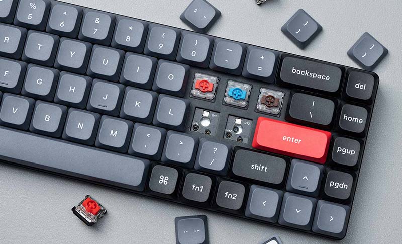 Hot Swappable Bàn phím cơ không dây Keychron K7 Pro RGB HotSwap hỗ trợ người dùng thay đổi nhanh các switch mà không cần hàn, chỉ cần đưa chúng vào là xong. |