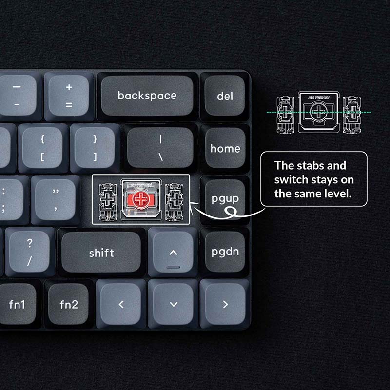 Bàn phím cơ không dây Keychron K7 Pro RGB HotSwap Keycap Low Profile Các keycaps PBT sẽ cung cấp khả năng chống dầu tuyệt vời, nâng cao cảm giác gõ và ngăn các huyền thoại bị phai mờ. Low Profile có độ dày phím chỉ bằng một nửa hoặc 2/3 so với phím cơ thông thường, hành trình phím ngắn giúp thao tác phím nhanh hơn và trọng lượng nhẹ dễ mang theo. |