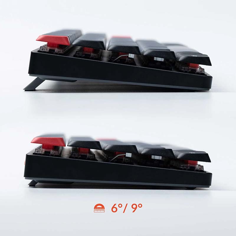 Tùy chỉnh độ cao Bàn phím cơ không dây Keychron K7 Pro RGB HotSwap thiết kế chân đế bàn phím giúp nâng độ cao 3 cấp độ, tạo góc nghiêng để giúp bạn thoải mái hơn khi sử dụng. |