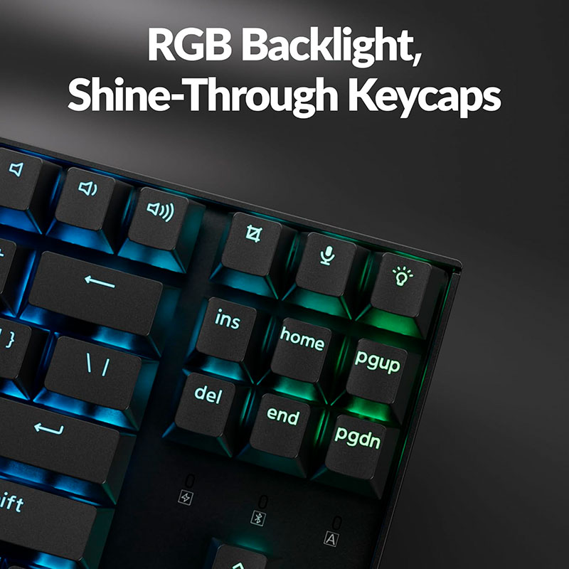 Keychron K8 V2 QMK RGB sở hữu đèn nền RGB đa vùng với hơn 22 chế độ hiển thị, có thể điều chỉnh tốc độ, độ sáng, màu sắc và hiệu ứng ngay trên bàn phím hoặc qua Keychron Launcher. Các keycap PBT double-shot có khả năng shine-through, cho ánh sáng lan tỏa đều và đẹp mắt, giúp bàn làm việc trở nên nổi bật và hiện đại hơn bao giờ hết.