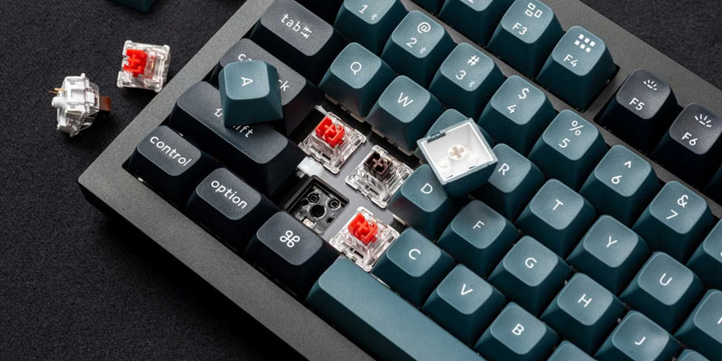 Bàn phím cơ không dây Keychron Q1 Pro Silver Grey RGB Knob Hotswap hỗ trợ người dùng thay đổi nhanh các switch mà không cần hàn, chỉ cần đưa chúng vào là xong.