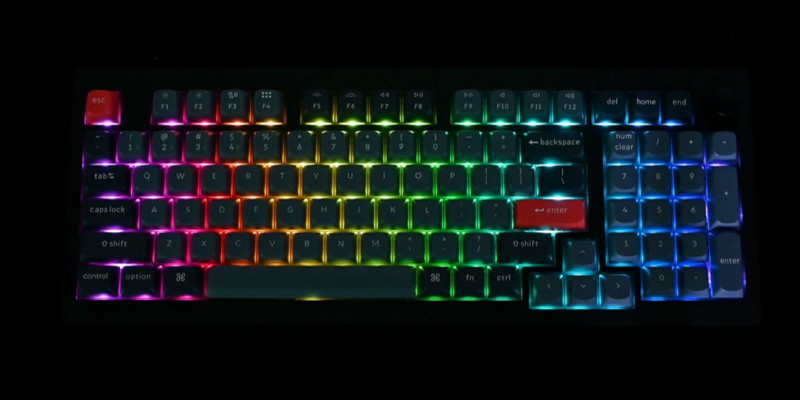 Bàn phím cơ không dây Keychron V5 Max với thiết kế South Facing giúp việc hiển thị Led tốt hơn khi dùng kết hợp cùng keycap không xuyên Led.