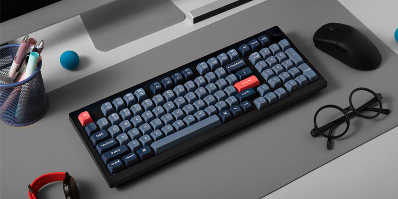 Bàn phím cơ không dây Keychron V5 Max hỗ trợ người dùng thay đổi nhanh các switch mà không cần hàn, chỉ cần đưa chúng vào là xong.