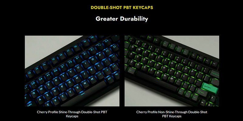 Keycap PBT double-shot xuyên LED và hệ thống đèn nền RGB sống động