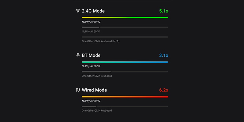 Với Bàn phím cơ không dây Nuphy Air60 V2 RGB Hotswap (Nuphy Sw), qua các bài kiểm tra thực tế, Nuphy Air60 V2 đã cho thấy hiệu suất độ trễ vượt trội so với phiên bản tiền nhiệm và các đối thủ khác trên thị trường. Kết quả này không chỉ bất ngờ mà còn chính thức phá vỡ mọi định kiến rằng bàn phím low-profile không thể đáp ứng nhu cầu của các game thủ chuyên nghiệp hay các ứng dụng đòi hỏi độ trễ thấp. Với Nuphy Air60 V2, bạn hoàn toàn có thể tự tin chinh phục mọi thử thách, từ những trận game căng thẳng đến công việc đòi hỏi tốc độ phản hồi tức thì.